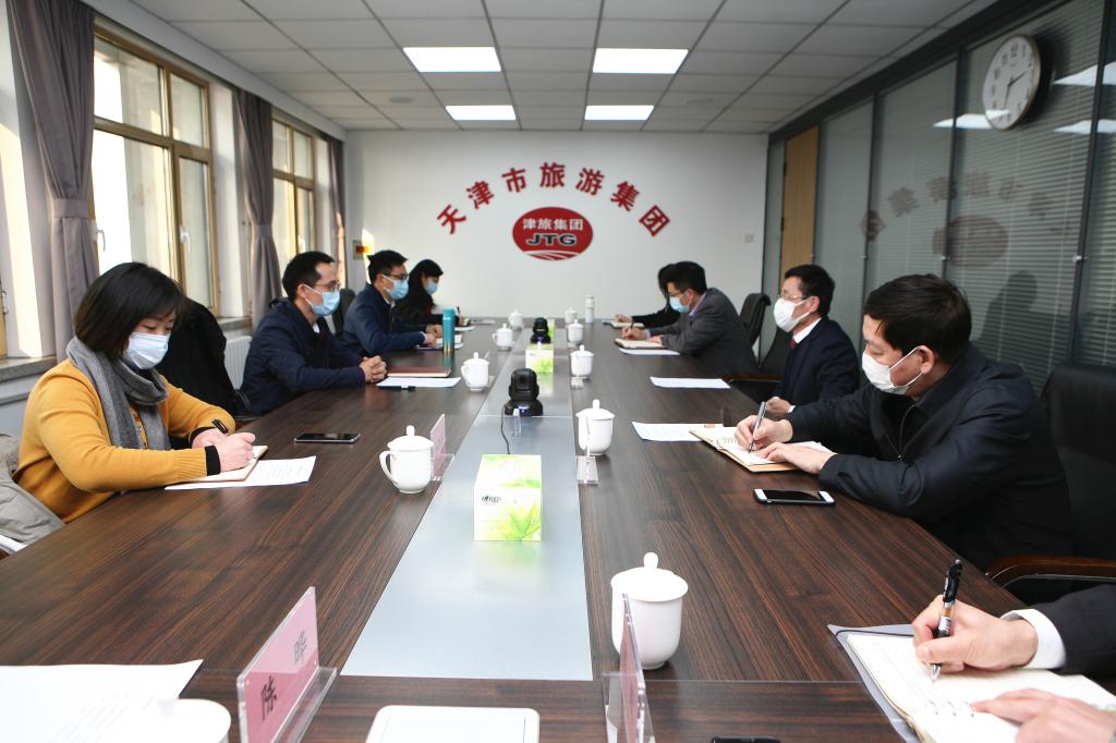 新年伊始,为促进我院与天津市优秀文旅企业的深度合作与交流,实现在高端培训、英国365、全面育人等相关工作方面的开拓创新,发挥我院在省部共建现代旅游业发展中的作用担当,1月20日下午,学院党委书记易勇军带队,副书记杨晓晶、副院长陈晔、副院长杨德进、高端培训中心主任孙睿睿一行前往天津旅游集团开展战略合作座谈。天津旅游(控股)集团党委书记、董事长左坚,集团党委委员、副总经理孙继强,集团党委委员、党群部部长王永勇,集团人力资源部部长陈敬,天津北方人才港有限公司总经理刘永杰,出席了此次合作洽谈会。