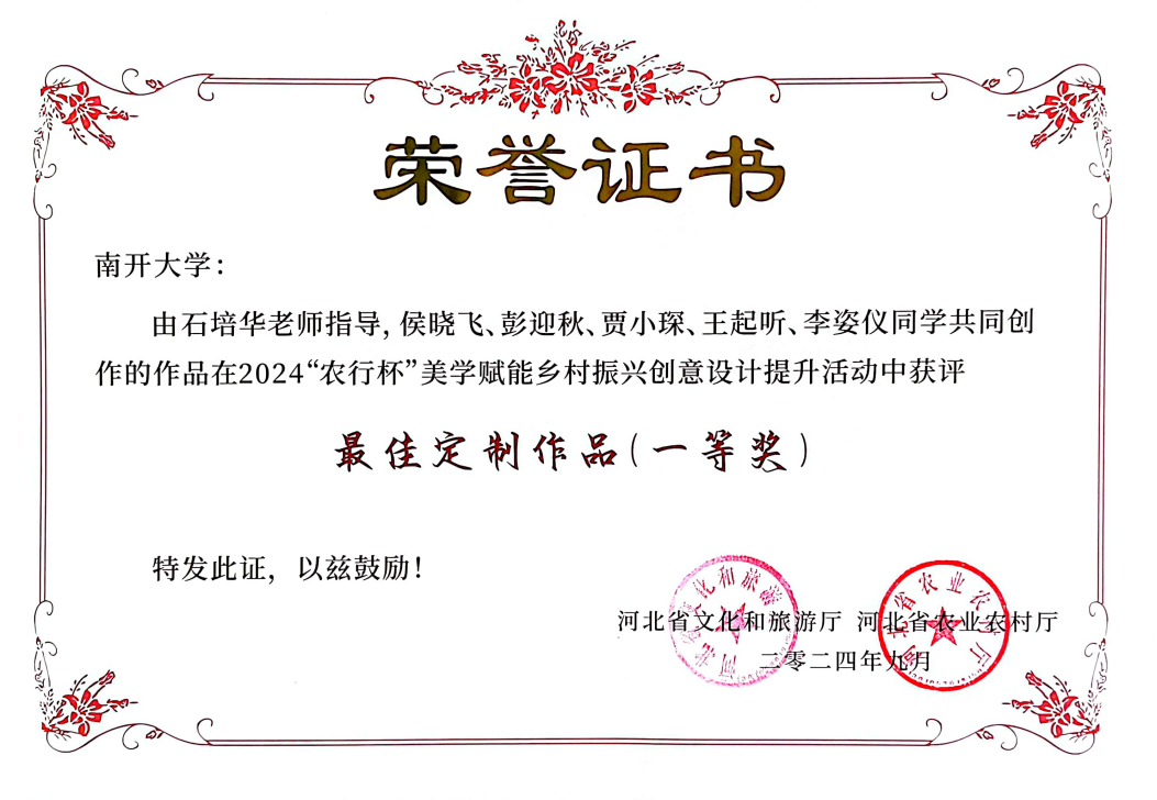 (通讯员 侯晓飞)9月20日,由河北省农业农村厅、河北省文化和旅游厅共同主办,秦皇岛市农业农村局、昌黎县人民政府承办的河北省2024全省休闲农业推介暨乡村创意设计成果推广活动在河北省昌黎县举行。我院博士研究生侯晓飞代表石培华教授设计团队参加本次活动,并作为本次活动优秀获奖单位的唯一代表进行了发言。由石培华教授牵头和指导,博士研究生侯晓飞具体组织落实推进,彭迎秋、贾小琛、王起听、李姿仪4位成员组成的师生团队,为雄安新区黄湾村设计的乡村创意成果获得最佳定制作品(一等奖),团队与黄湾村共同推进落地的项目获得优秀成果奖。