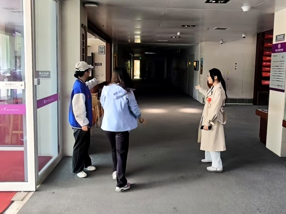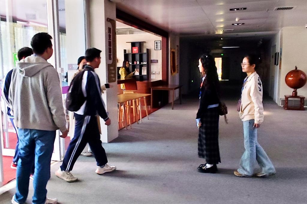 “您好!洗手间请往这边走”“需要帮您接热水吗?”“一楼大厅的陈列物品及展示照片是我们学院的特色亮点,我来为您讲解”……从解答校园路线疑问,到提供热水座椅,再到介绍学院建设成就,志愿者们用“一站式”服务传递着南开人的热忱。