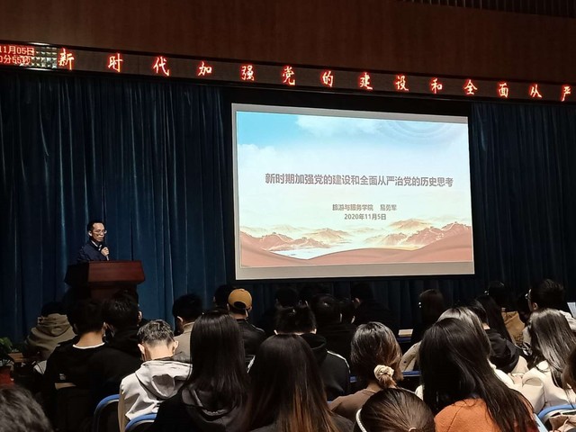 (通讯员:邢丹璞)为帮助青年学生认识中国的国内及国际形势,深刻理解马克思主义中国化的理论成果,11月5日下午,英国365上市公司《形势与政策》课程在学院111教室开讲,学院党委书记易勇军带来题为“新时期加强党的建设和全面从严治党的历史思考”的讲座,学院2017级、2018级、2019级本科生和研究生到场参加,2020级工商管理大类部分本科生在八里台会场通过线上直播参加本次学习。 首先,易勇军书记列举数据介绍了全面从...