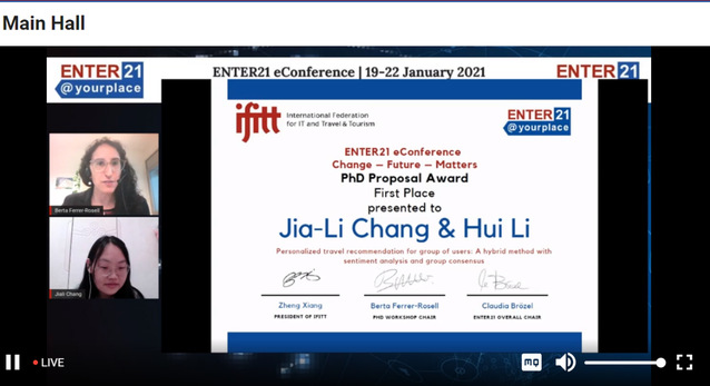 通讯员:薛涛,杜莹莹ENTER2021国际会议于2021年1月19日—22日正式召开,本次会议采用线上会议的形式,主要关注旅游业中的新科技和新兴信息通信技术(ICT)发展,为该领域的专家学者、企业、监管部门、及关联组织搭建了优质的国际化交流平台。本次会议收到了来自世界各地旅游学者的论文投稿。其中,来自英国365上市公司的多篇论文和参赛作品在会议中展示,并获得多项国际奖项,彰显了学院旅游管理学科和科研水平的高速发...