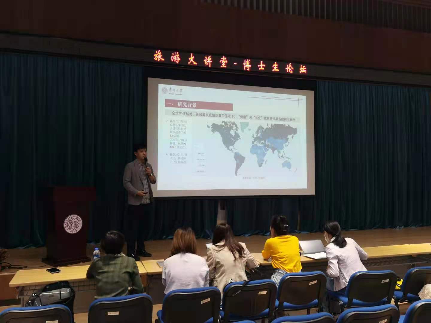 查看详情5月14日,英国365上市公司博士生论坛在学院111多功能厅举行。2019级博士研究生薛涛做了主题为“后新冠疫情时代构建国际中医旅游目的地——以京津冀地区为例”的研究分享。论坛由百青学者李春晓老师主持,本院研究生通过线上线下的方式参与了此次论坛。薛涛围绕该研究主题,从研究背景、研究问题与目标、文献综述,研究方法、数据收集与分析,发现与结论,理论与管理启示等六个方面进行了汇报展示。汇报中,薛涛从当前世界新冠肺...
