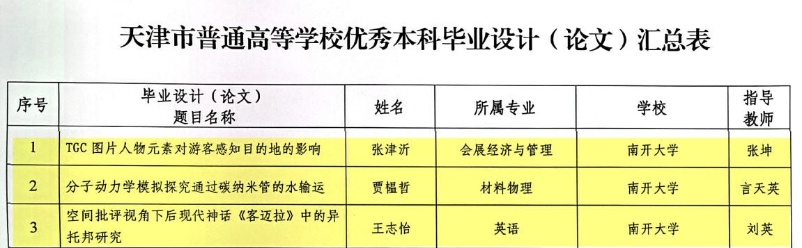 查看详情近日,天津市教育委员会下发《关于公布第十二届天津市级本科生优秀毕业设计(论文)评审结果的通知》(津教高函〔2022〕2号)文件,公布了第十二届天津市级本科生优秀毕业设计(论文)评选结果,我院2017级本科生(现为我院2021级硕士研究生)张津沂撰写的本科毕业论文《TGC图片人物元素对游客感知目的地的影响》(指导老师:张坤副教授)成功入选。张津沂同学的毕业论文聚焦于游客生成图片中的人物元素对游客感知目的地的影响...