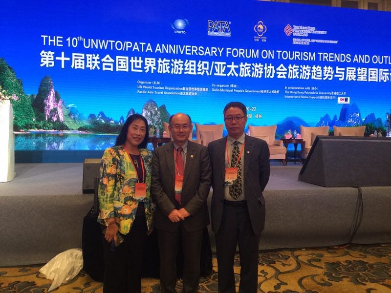 查看详情10月20-22日,我院副院长徐虹教授受邀参加了在桂林召开的第十届联合国世界旅游组织/亚太旅游协会旅游趋势与展望国际论坛。本届论坛由联合国世界旅游组织、亚太旅游协会主办,桂林市人民政府承办,香港理工大学协办。来自全球90多个国家、地区、国际组织及全国20多个省市的旅游官员、专家学者和旅游业界的嘉宾代表出席论坛。联合国世界旅游组织秘书长塔勒布.瑞法依,中国国家旅游局副局长杜江,广西壮族自治区副主席张晓钦,联...