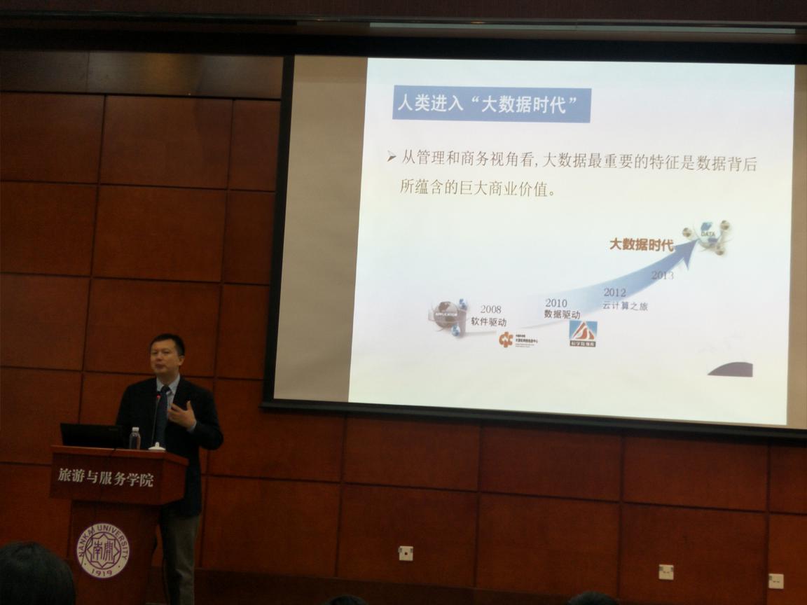 查看详情2017年10月29日下午,哈尔滨工业大学管理学院院长叶强教授应邀来我院访问,向学院师生分享了题为“大数据及人工智能背景下基于社交媒体数据的酒店管理研究”的讲座。此次讲座由徐虹副院长主持,学院部分老师、博士生、硕士生及部分本科生参加了此次讲座。叶强教授首先向大家介绍了大数据及人工智能在近十年间的发展状况,分析了大数据及人工智能的主要特征以及在实践中的应用。然后和大家分享了他的研究团队的两项成果,主题分...