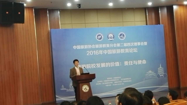 11月3-5日,中国旅游协会旅游教育分会第二届四次理事会暨2016年中国旅游教育论坛在杭州举行。刘莉莉秘书长主持开幕式,国家旅游局办公室巡视员刘士军致辞,来自全国150个单位350余名旅游教育专家、学者参加此次论坛,围绕“旅游院校发展的价值:责任与使命”展开思想碰撞。