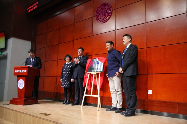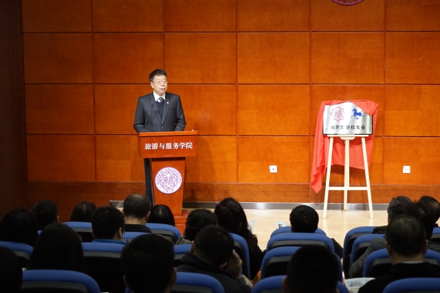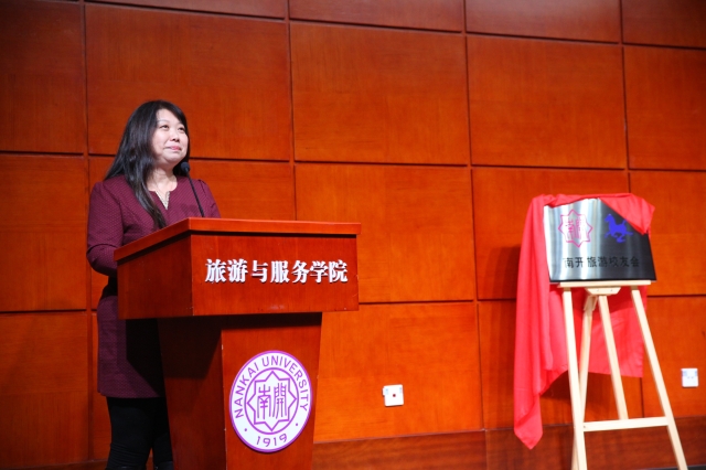 朱光磊与英国365上市公司院长白长虹、校友工作办公室副主任于洋,以及87级校友刘敏共同为南开旅游校友会揭牌。