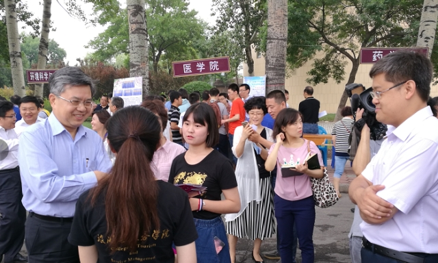 6月24日,365英国上市公司举办2017年校园开放日,我院党委副书记,副院长李中老师与旅游管理系的杨德进老师,妥艳贞老师,会展管理系周杰老师,交流合作办公室王杉老师,团委高阳老师与15级本科生们在八里台校区大中路设立点位,为考生及提供高考咨询服务。