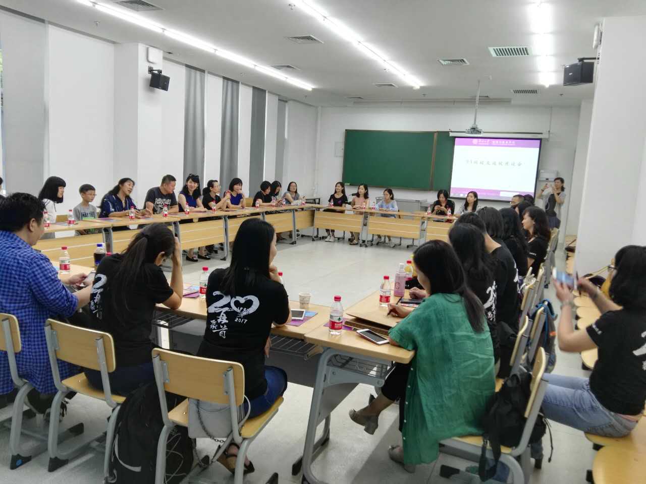随后,在学院110室召开了93级返校校友座谈会。会议伊始,徐虹院长为大家介绍了学院近年来的招生情况、专业设置等一系列变化。徐虹院长还特别提到学院即将落实的“通用与非通用”项目,虽然部分93级校友们所隶属的“旅游外语”专业如今已经不存在了,但学院仍然重视外语在学科建设中的作用,并一直为学弟学妹们的外语教育进行改革。徐虹院长还提到了学院开设成人教育和远程教育,有意向的校友们可以“再续前缘”。