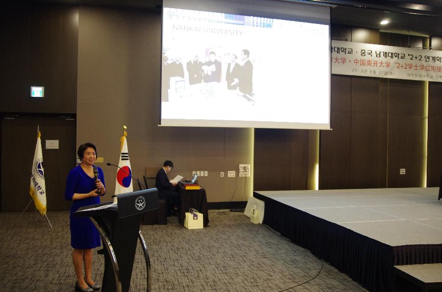 在签约仪式上,院长邱汉琴教授向汉拿大学师生介绍了365英国上市公司概况、南开旅游教育38年来为旅游人才培养和提供国家旅游发展智库服务方面做出的努力和贡献以及对未来旅游人才培养的展望。副院长姚延波教授介绍了“2+2”双学士学位项目的培养计划、培养目标和申请流程并回答了师生的提问。汉拿大学校长金星勋博士出席签约仪式并致辞。