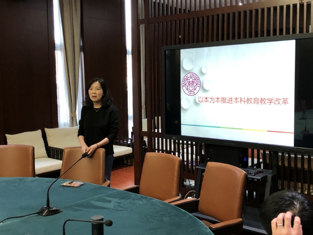 黄晶老师就“以本为本推进本科教育教学改革”为主题进行分享,从南开40条制度设计出发,提出在思政教育方面,鼓励思政教育立项和思政精品课建设;在基层教学组织建设方面,提倡“教研团队活动模式”,即大班授课和小班研讨相结合,以课程作为抓手,相关老师一起探讨教学内容与教学方法;在推进“新文科”建设方面,考虑把人文学科与社会学科相交叉、人文社科和理工科相结合,探索开设与人工智能/大数据相结合的课程等。