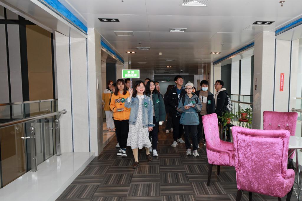 讲座最后特别安排了线上抽奖环节,学院为同学们精心准备了小礼物,讲座在欢声笑语中结束。随后,参与本次活动的所有学生在志愿者带领下有序参观了学院楼,成红波、李晓义等老师分别在各实验室为学生讲解教学专用设施设备。同学们纷纷表示学院温馨且富有创意和特色的共享学习空间和楼道文化令人印象深刻。