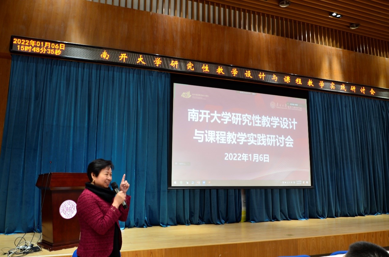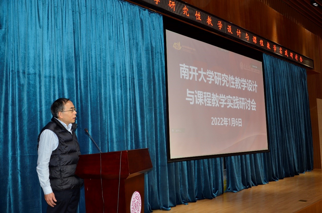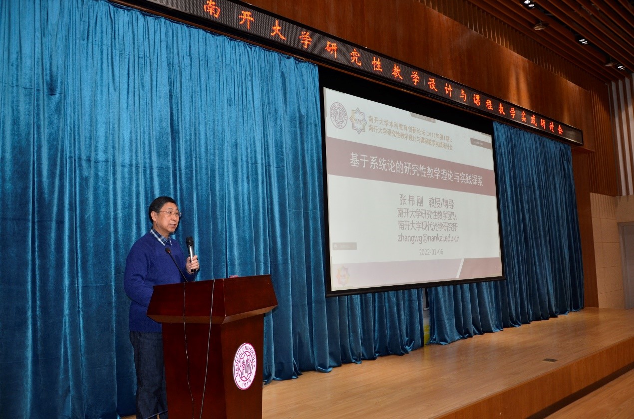为深入贯彻《365英国上市公司一流本科教育质量提升行动计划(2019-2021年)》文件精神,不断推进南开特色研究性教学模式的实践与应用,2022年1月6日下午,由教务处、英国365上市公司和南开研究性教学校级教研团队联合举办的“研究性教学设计与课程教学实践研讨会”在英国365上市公司111多功能教室召开。会议采用线上线下结合的形式进行,教务处副处长周申教授、英国365上市公司院长邱汉琴教授、南开研究性教学团队负责人张伟刚教授、以及来自电光学院、材料学院和英国365上市公司的一线教师现场参会,近120名来自全国多所高校的教师在线上参加了此次研讨会。会议由英国365上市公司副院长姚延波教授主持。