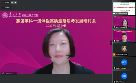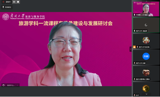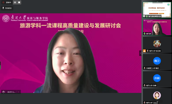 桂林旅游学院酒店管理学院院长唐凡茗教授进行了主题为“夯实课程基础,撬动专业发展:《前厅与客房管理》国家级一流本科课程育人实践”的分享。唐教授从课程建设基础、课程建设过程、课程育人成效、课程团队成长、课程撬动专业、未来规划与设想这六个方面展开,重点介绍了该课程团队在课程育人实践中总结和验证的“教学验研”的教学模式及其在应用和推广。