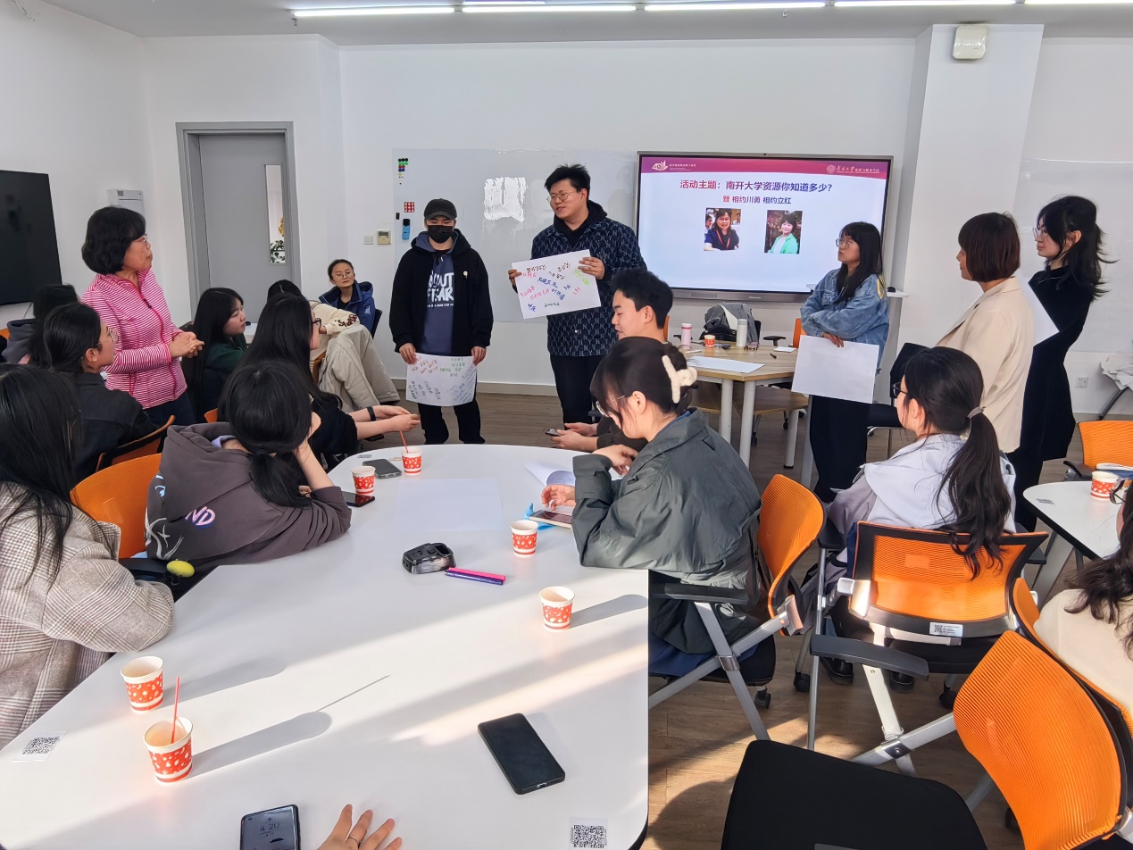 而后,导师进行了补充和分享,介绍了自己眼里的南开资源。李川勇教授首先补充了天津本地的地理优势与城市资源,而后提及了通识选修课中幸福课、国际视野与服务学习等热门课程,彰显“知中国,服务中国”的南开特色,鼓励同学们以所学服务于社会,又补充了学务会、学业指导、自然资源等校内资源。韩立红教授作为一名从本科起扎根南开的“老南开人”,向同学们介绍了她的大学时代南开的资源。从名师授课、讲座,到各种社交资源,学生们也了解了曾经的南开风华。