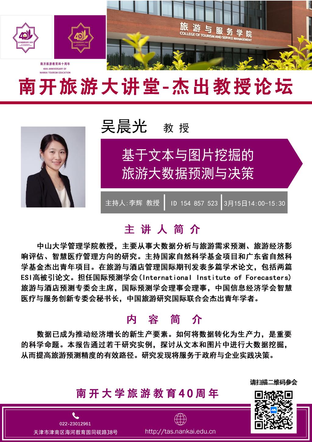 旅游大讲堂-杰出教授论坛-吴晨光:基于文本与图片挖掘的旅游大数据预测与决策