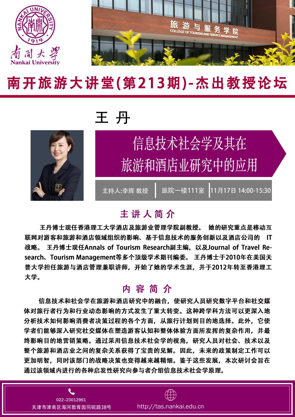 旅游大讲堂-杰出教授论坛-王丹:信息技术社会学及其在旅游和酒店业研究中的应用
